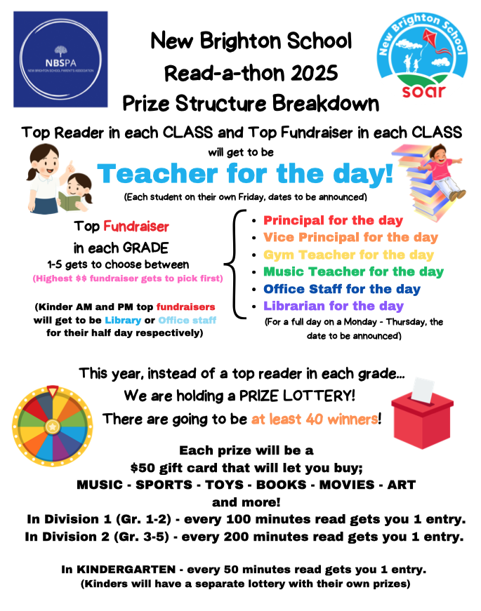 Our 3rd Annual New Brighton School Read-A-Thon is a wrap! Our students are incredible readers – they read 167,750 minutes and raised $16,735!!